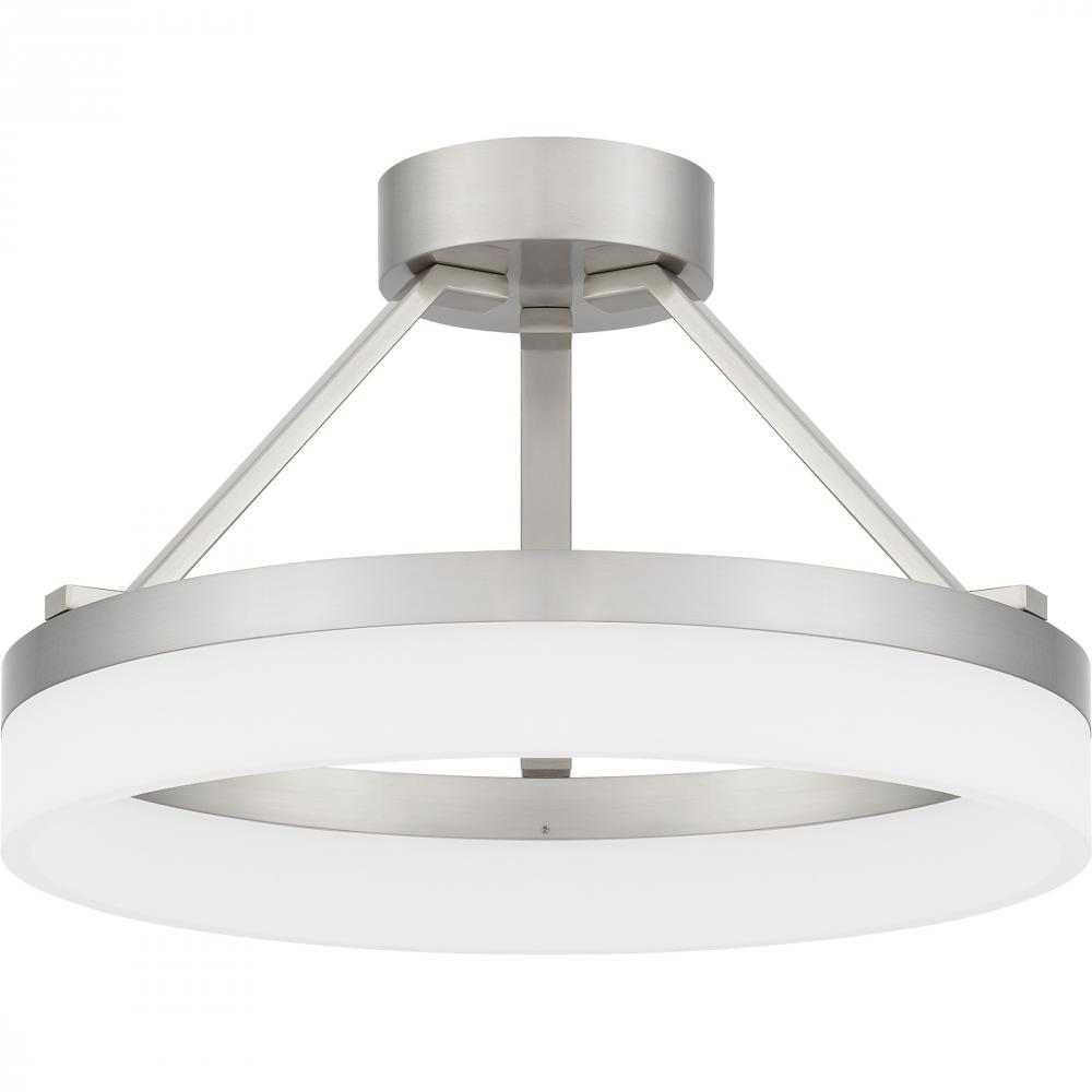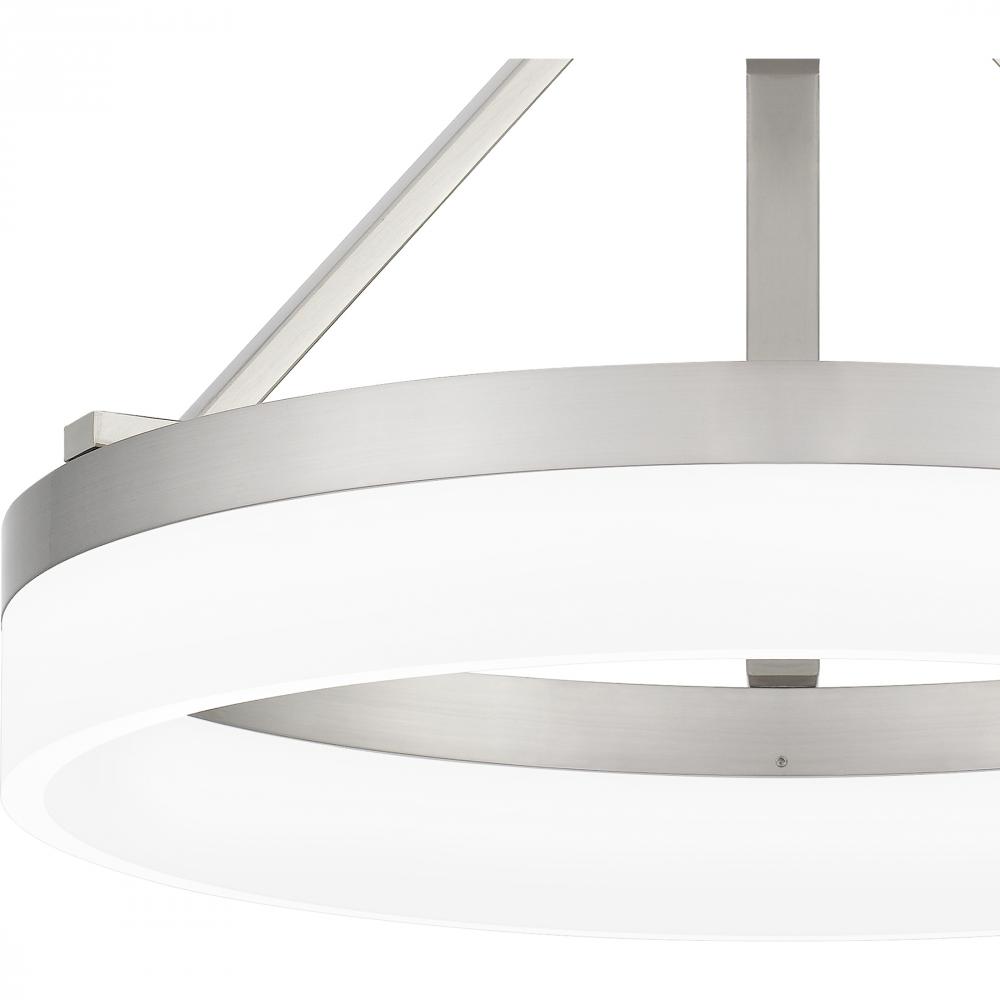 Sleek and striking, the minimalist Cohen series hypnotizes with a halo-like ring of glowing LED light. Choose from a variety of style options from flush mount to chandelier, all featuring an etched acrylic shade and your choice of either brushed nickel or
