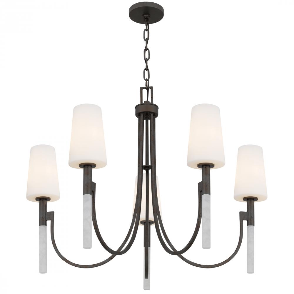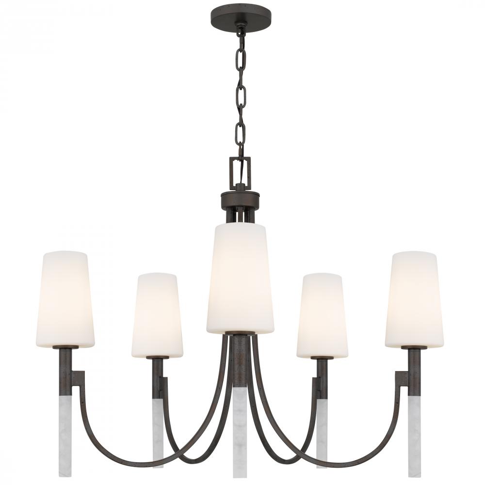 Graceful curves meet sculptural elegance in the Eloura Chandelier, a statement of timeless beauty and modern romance. Finished in a deep iron gate patina, its sweeping arms cradle opal etched glass shades that softly glow like candlelight at dusk. Beneath