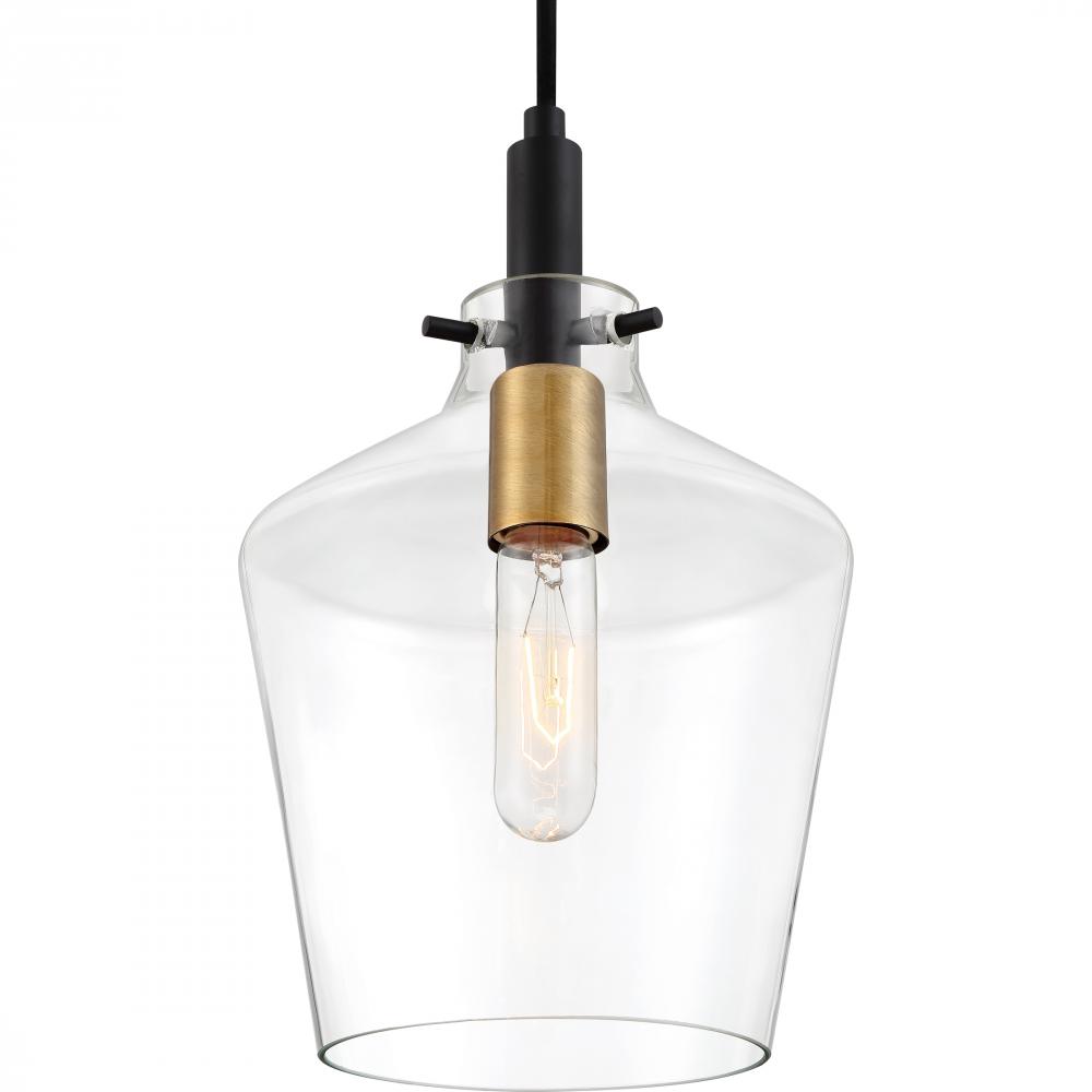 The Junes minimalist charm is enhanced by simple industrial details. A subtly tapered clear glass shade beautifully showcases the painted brass sockets, which pop against the deep earth black finish. Choose from a variety of configurations and adjust the c
