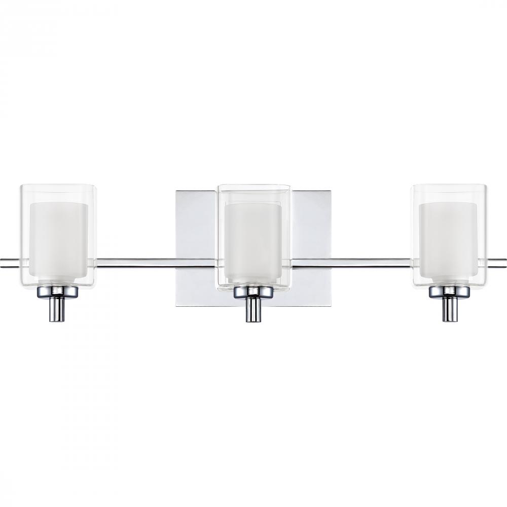 This modern posh collection features a simplistic design with a sleek polished chrome finish. The inner heavy glass is sand-blasted inside and encased within outer clear glass for a sophisticated and stunning look.