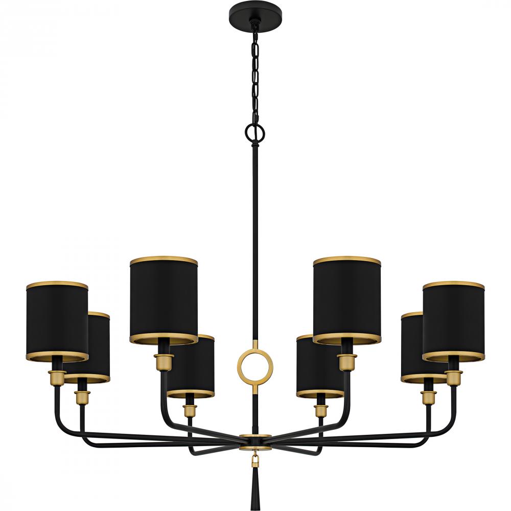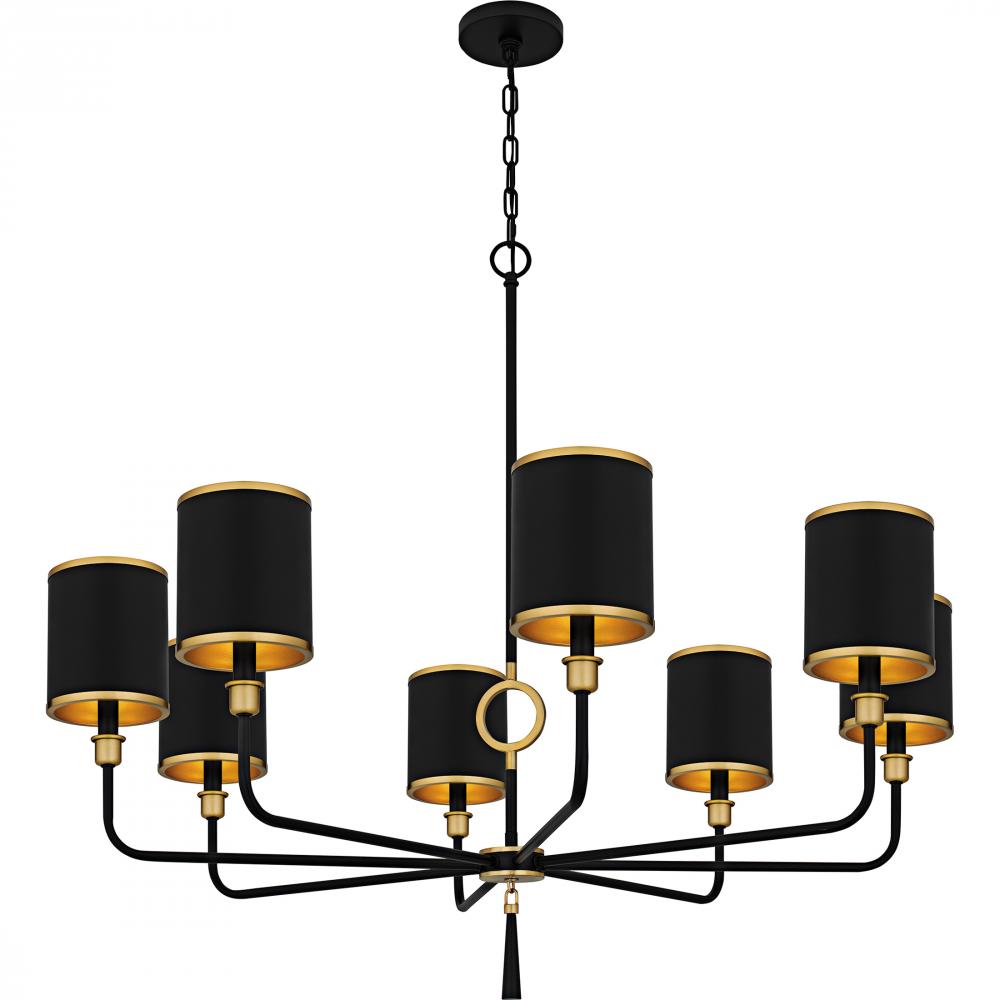 The Lockery chandelier combines traditional style with an updated twist, featuring a sleek matte black finish that complements any decor. The metal shades, with their striking gold interiors, are designed to enhance light output and create a warm, inviting