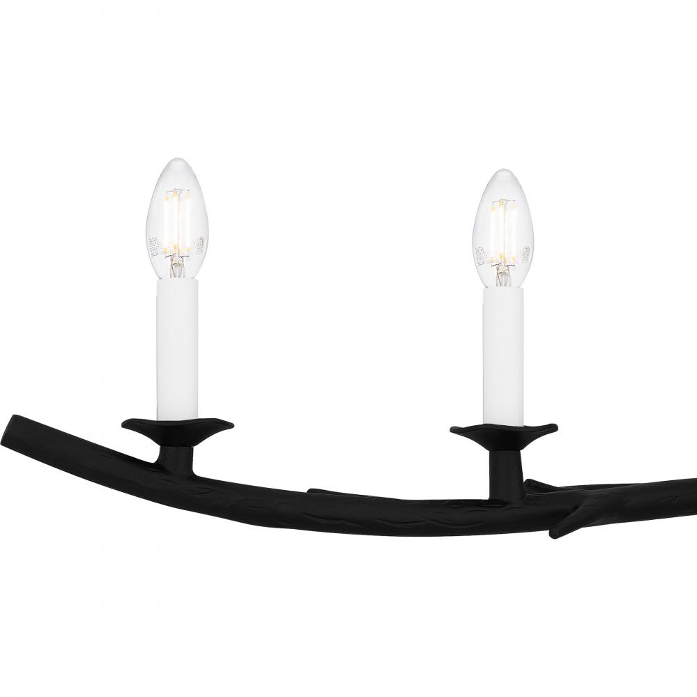 With an earth black finish and thorn-like accents, Oakley chandeliers make an instant statement. Available as a classic chandelier or linear island light, the traditional silhouette features unique details perfect for any kitchen, living room, or dining ro