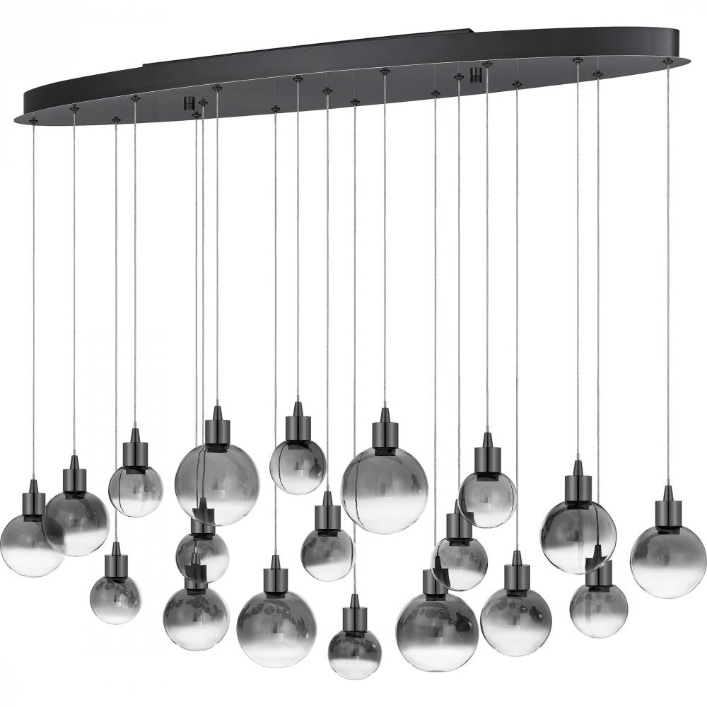 Take your living space to the next level with the contemporary style of the Shadow collection. The smoke glass shades come in multiple sizes and are suspended at staggered heights for a dramatic look. Finished in Black Chrome and constructed using integrat