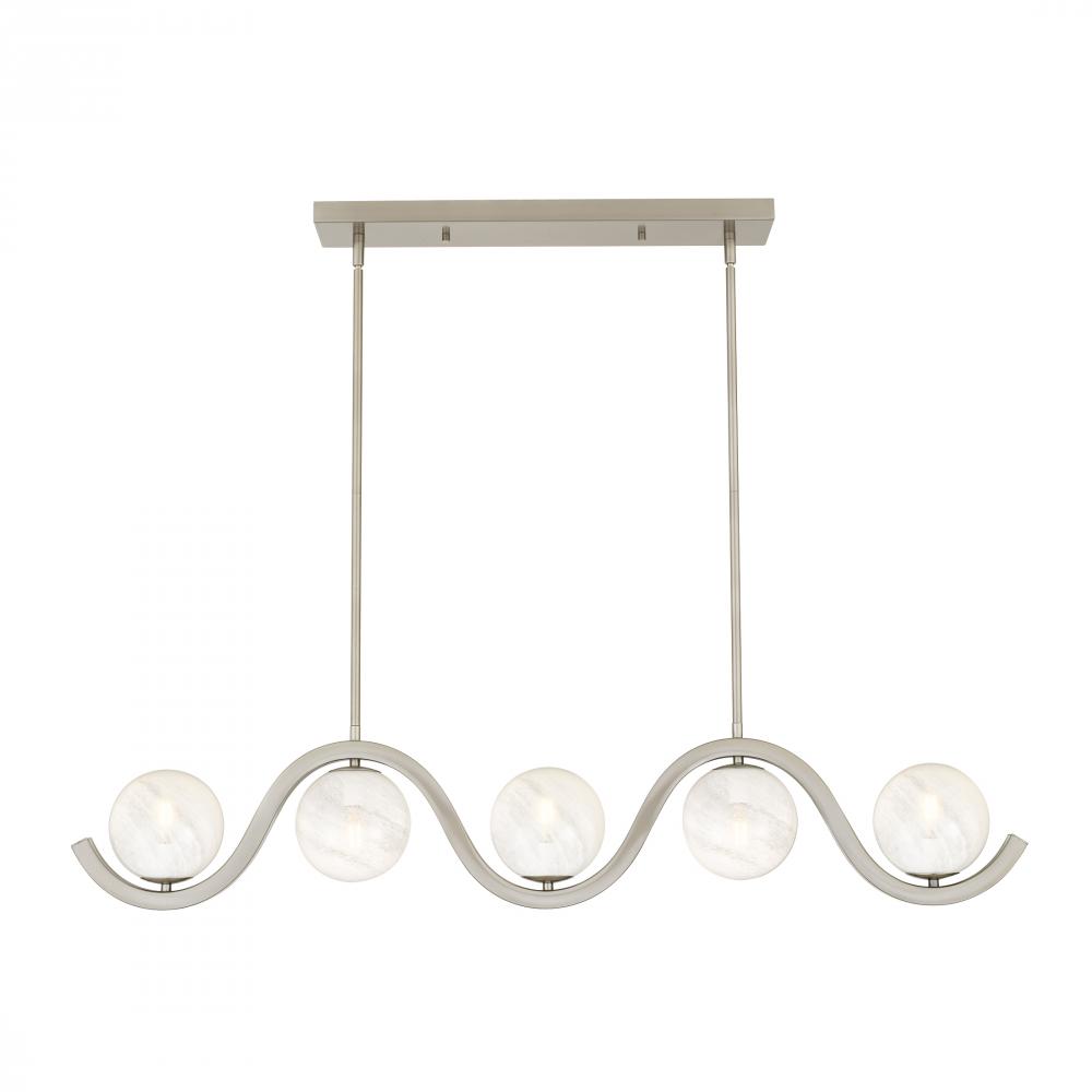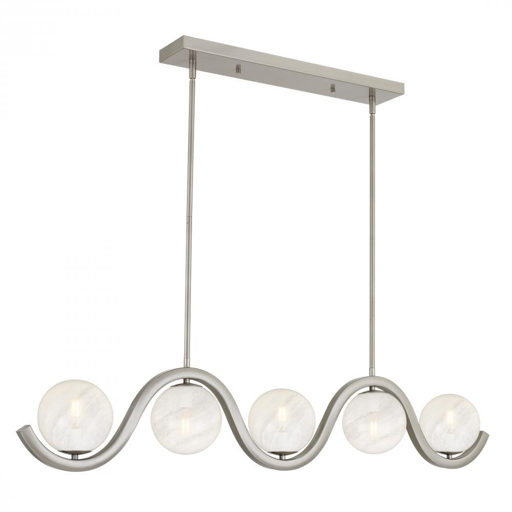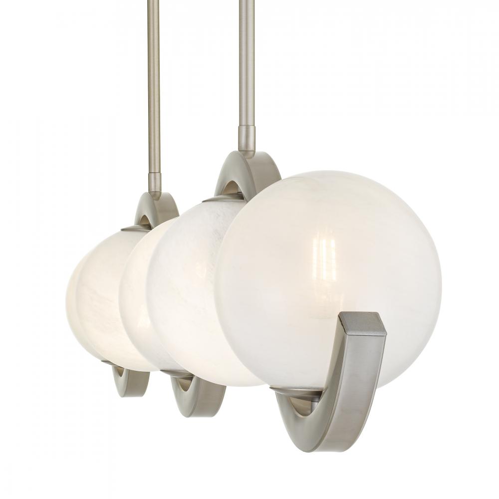 True to its name, Spherical celebrates modern art with its graceful curves and distinctive glass orbs. The sculptural island light is available in lustrous aged brass or sleek brushed nickel, while the soft, white cloud glass spheres steal the show with th