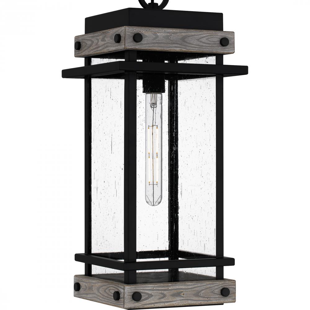 Create a lasting impression with Strader outdoor lanterns. A matte black frame and distressed wood accents pair with clear seedy glass panels for a farmhouse-ready look. Available as a hanging lantern or in various sizes of wall lantern, Strader is an easy