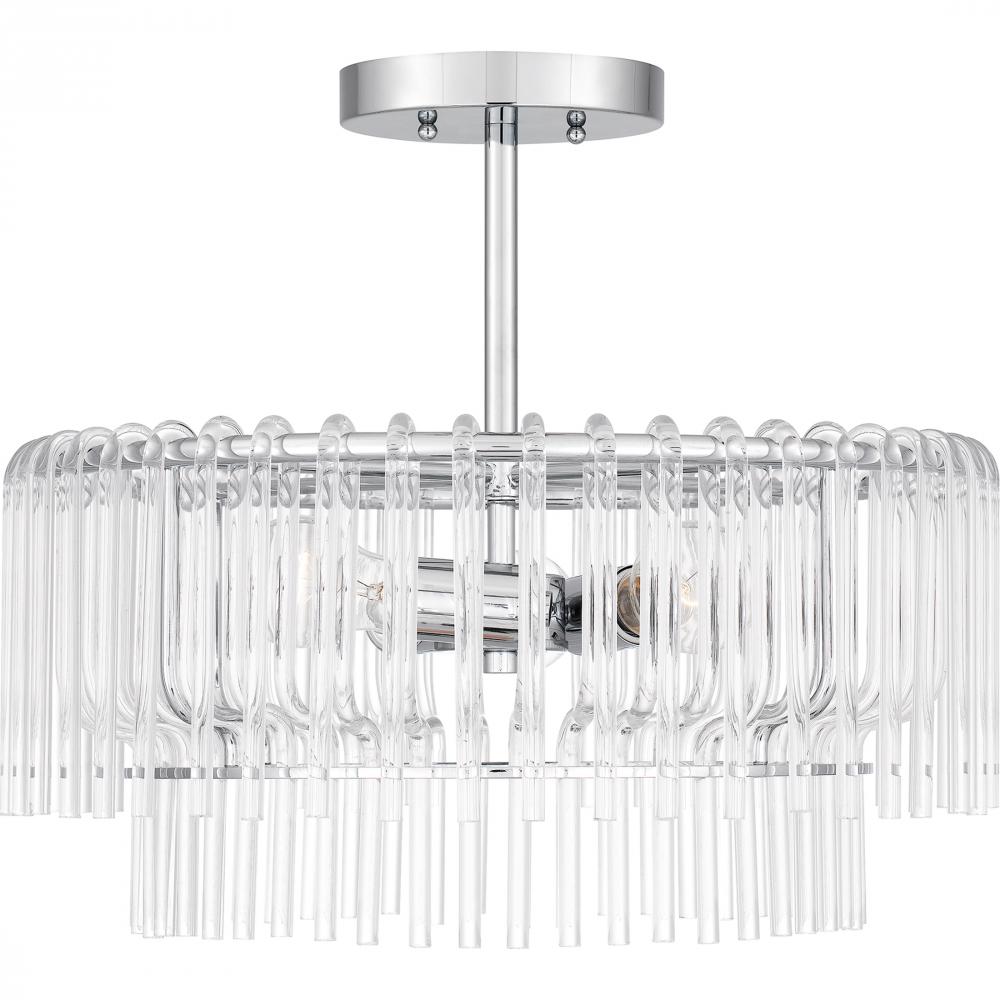 Part of the popular Platinum by Quoizel collection, Tayshia is a true statement of beauty. The clear glass shade features a cascading layered design that adds a fun, airy feel. With a sleek polished chrome finish, the Tayshia ceiling light is a perfect com