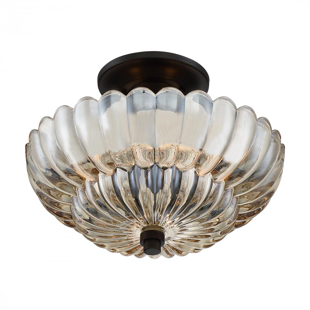 Featuring a beautifully scalloped shade, the Whitecap semi-flush mount light is elegant and sophisticated. The amber glass flows beautifully upward towards the canopy. Whitecap is finished in a rich mottled cocoa finish, providing depth and contrast to the