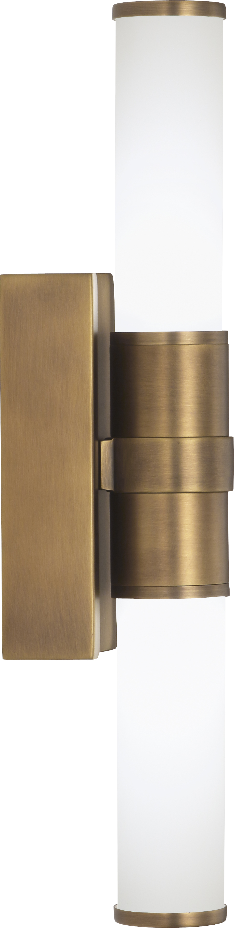 The Roderick collection is sleek with an air of distinction. Frosted glass shades provides bright light that is pleasantly diffused. - Warm Brass Finish Roderick Wall Sconce with White Frosted Glass Shades