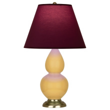 Sunset Yellow Glazed Ceramic with Antique Brass Finished Accents Small Double Gourd Accent Lamp with Pearl Dupioni Fabric Shade - Our Double Gourd collection features a simple but gracefully curving silhouette. Available in a wide array of vibrant colors and several different base finishes.