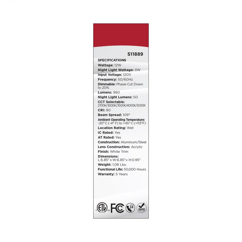 12 Watt LED Direct Wire Downlight with Night Light; 6 Inch; Remote Driver; CCT Selectable; Dimmable;