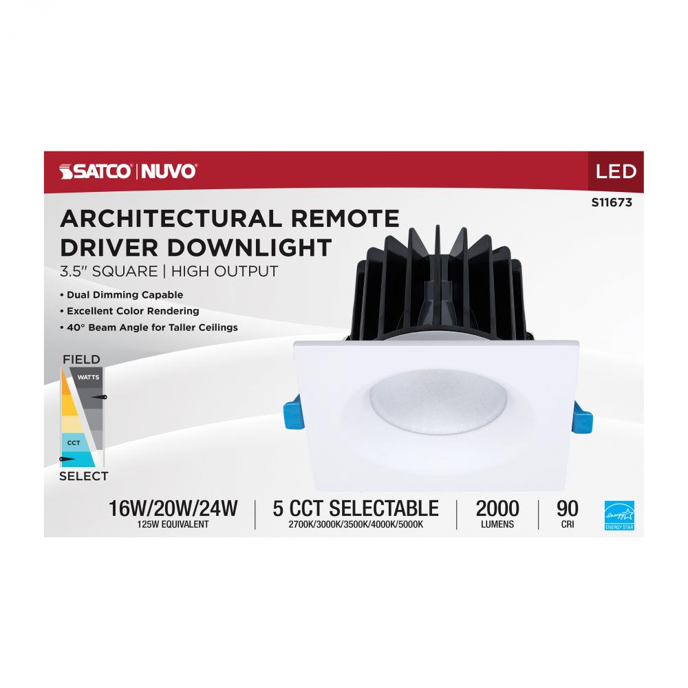 16/20/24 Watt LED Remote Driver Downlight; 27K/30K/35K/40K/50K CCT; Field Selectable; Square; White Finish; Dual Dimming; 120-277 Volt