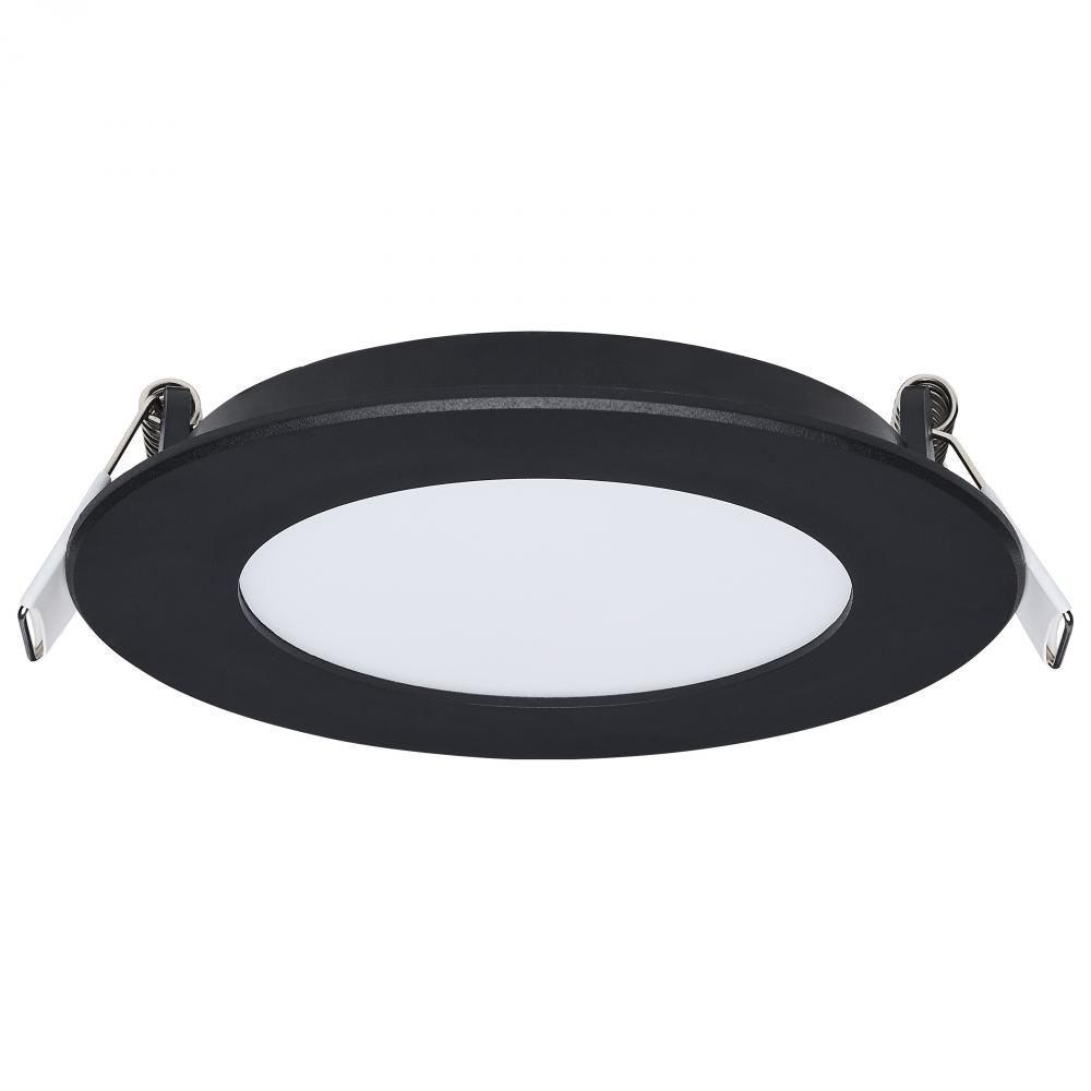 8 Watt LED Direct Wire Performer Series Downlight; Remote Driver; 4 Inch; 27K/3K/35K/4K/5K CCT Selectable; Round; Flat Face; Black Finish