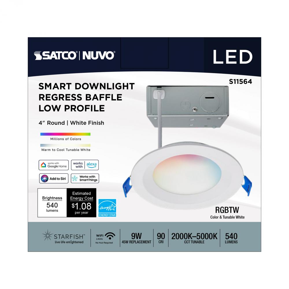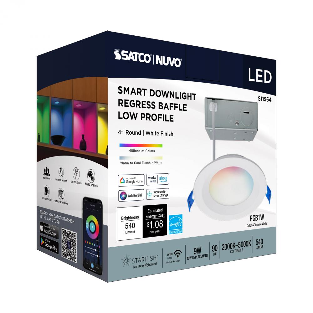 SATCO NUVO's S11564 LED Slimfit Downlight with STARFISH technology is the ultimate choice for smart lighting and ambiance control. Download the STARFISH app to customize any tunable white color temperatures from 2000K warm white to 5000K natural light
