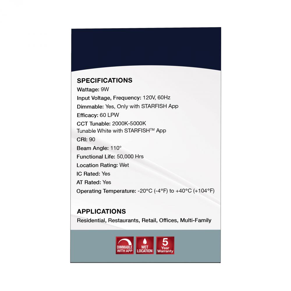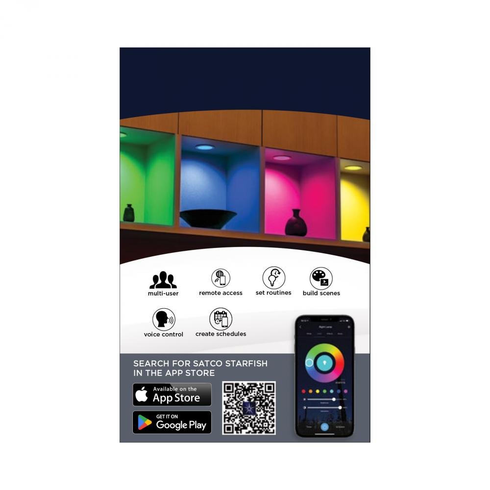 SATCO NUVO's LED Slimfit Downlights with STARFISH technology are the ultimate choice for smart lighting and ambiance control. Download the STARFISH app to customize any tunable white color temperatures from 2000K warm white to 5000K natural light or ch