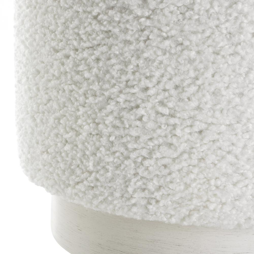 This Plush Ottoman is Covered in White Faux Shearling Paired with A Wire Brushed Oak Base in A Modern White Finish. Versatile and Stylish, This Piece Can Be Used As A Seat or Footrest, Grouped Together or As A Singular Accent Piece.