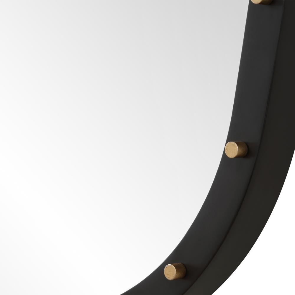 Industrial Chic Meets Modern Sophistication In This Mirror's Design. The Matte Black Iron Frame, Accented With Plated Brass Screw Caps, Adds A Touch Of Urban Style. May Be Hung Horizontal Or Vertical.