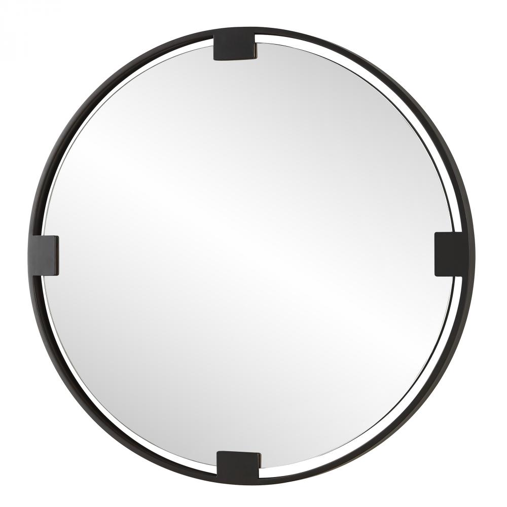 This Round Mirror Is Crafted With A Hefty Dark Bronze Iron Frame, Adorned With Matching Bands That Suspend A Polished Edge Mirror For A Look That Exudes A Timeless Charm That Complements Any Decor Style.