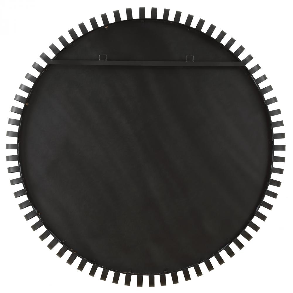 This Large Round Mirror Is Crafted From Solid Iron And Elegantly Finished In Satin Black. Its Commanding Presence Is Accentuated By Thick Rings Surrounding An Inner Band, Adding A Touch Of Contemporary Sophistication To Any Space.