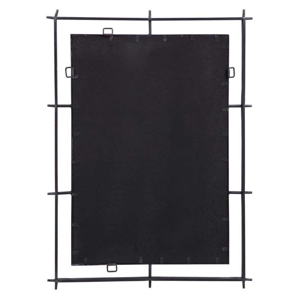 A Nod to Traditional Industrial Style, This Mirror Features A Handcrafted Solid Iron Frame Finished in A Noticeably Distressed Deep Ebony Finish. The Piece Has A Generous 1 1/4" Bevel and May Be Hung Horizontal or Vertical.
