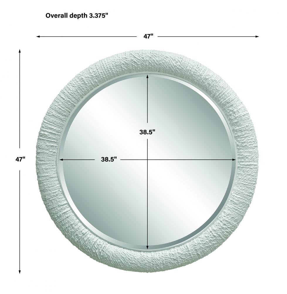 A Casual Yet Sophisticated Nod to Classic Coastal Style, This Mirror Features A Rounded Frame Made of Natural Woven Banana Plant Accented with A Rattan Inner Edge, All Finished in Matte White. Mirror Has A Generous 1.5" Bevel.