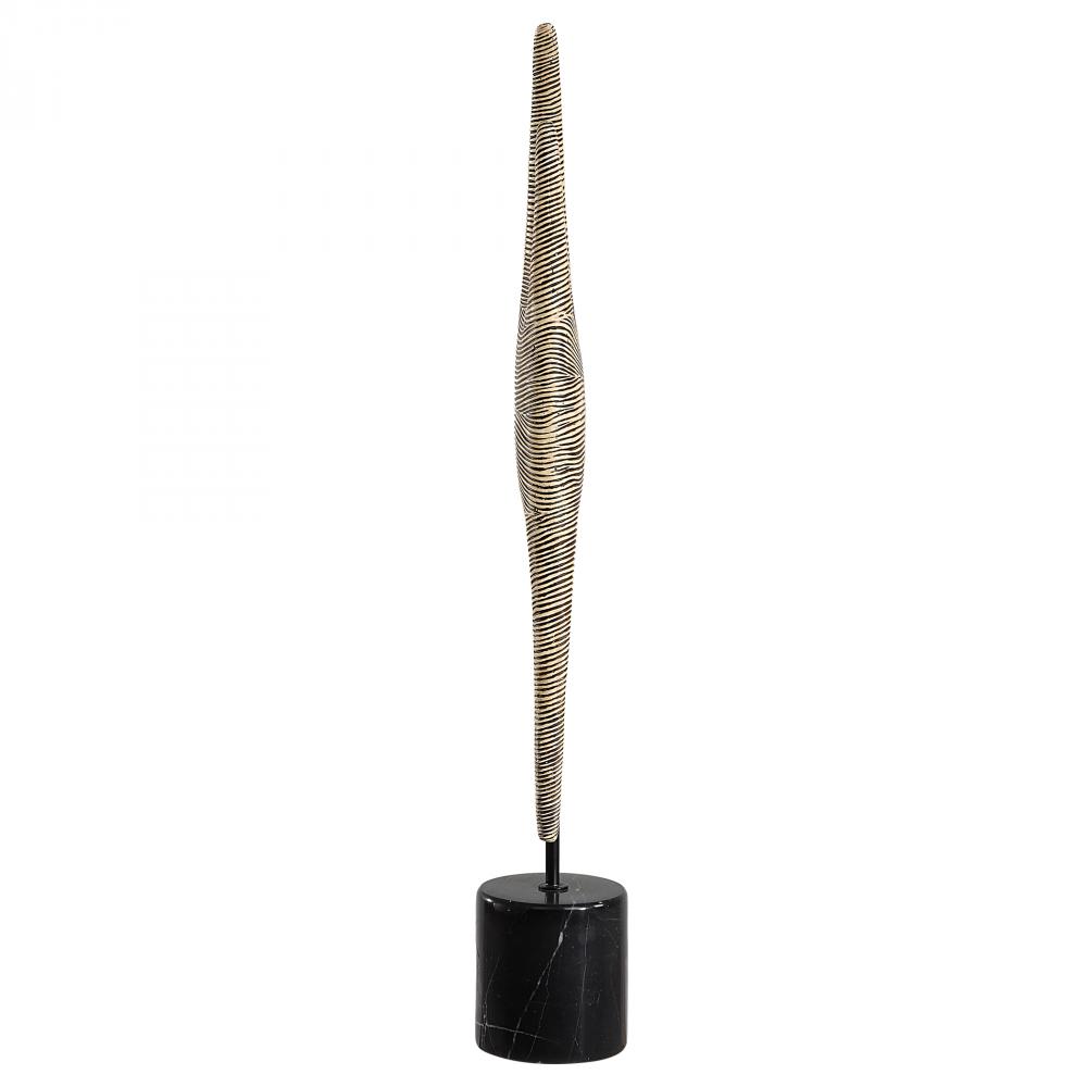 Inspired By A Mermaid's Purse, This Sculpture Features A Very Unique Look and Ribbed Pattern Finished in Black and White with Black Iron Stand and Marble Base.