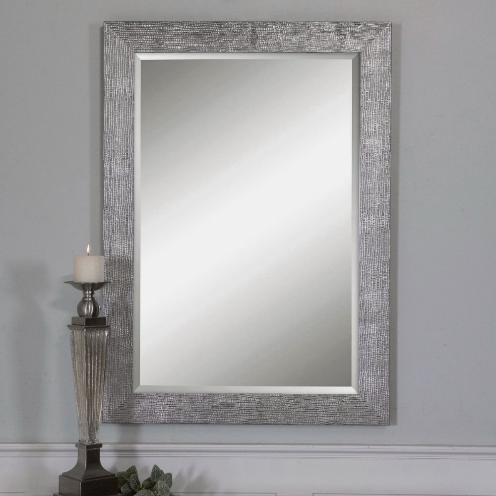 Frame Has A Textured, Silver Finish with A Light Gray Glaze. Mirror is Beveled and May Be Hung Horizontal or Vertical.
