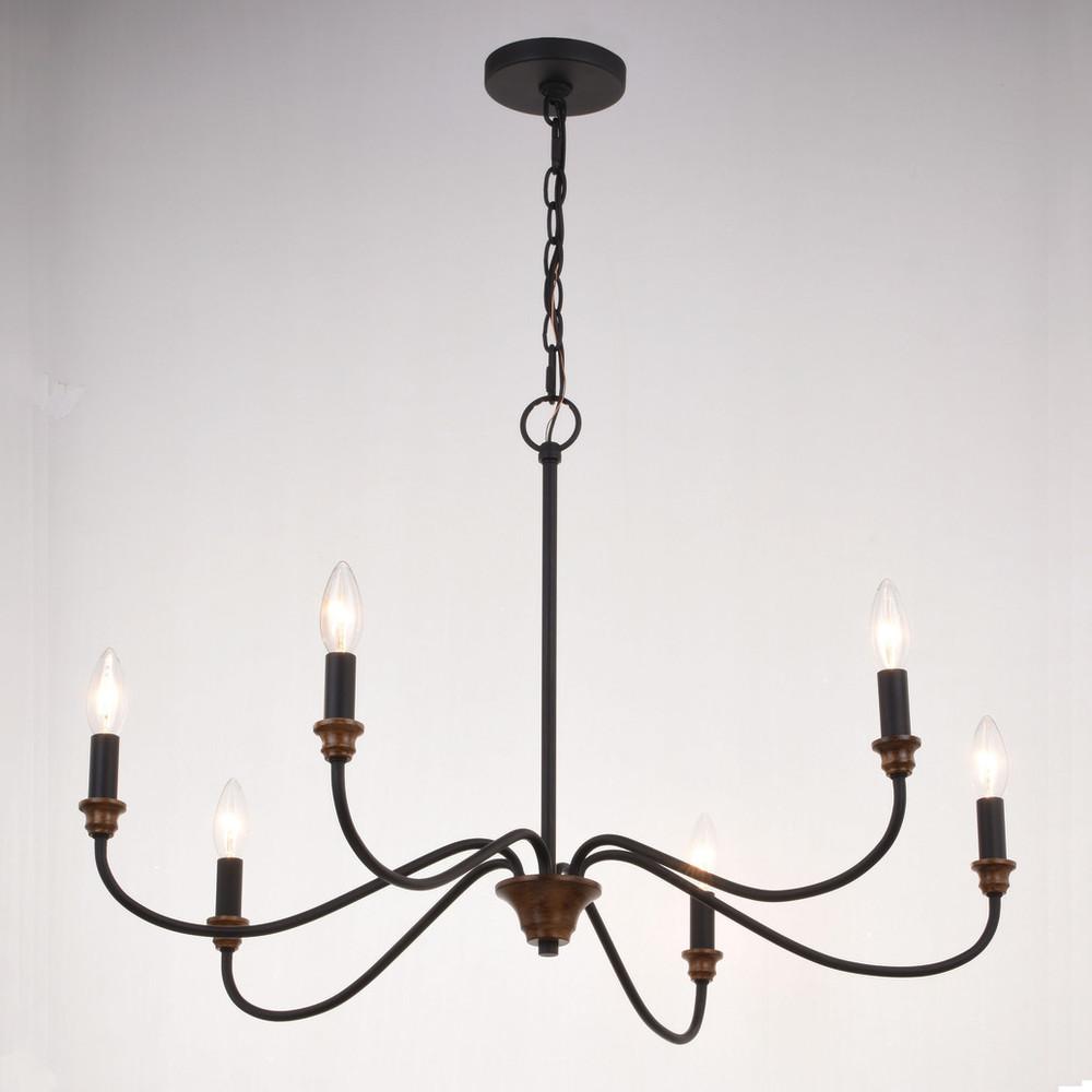 Annabelle 30-in. 6 Light Chandelier Matte Black and Brushed Walnut