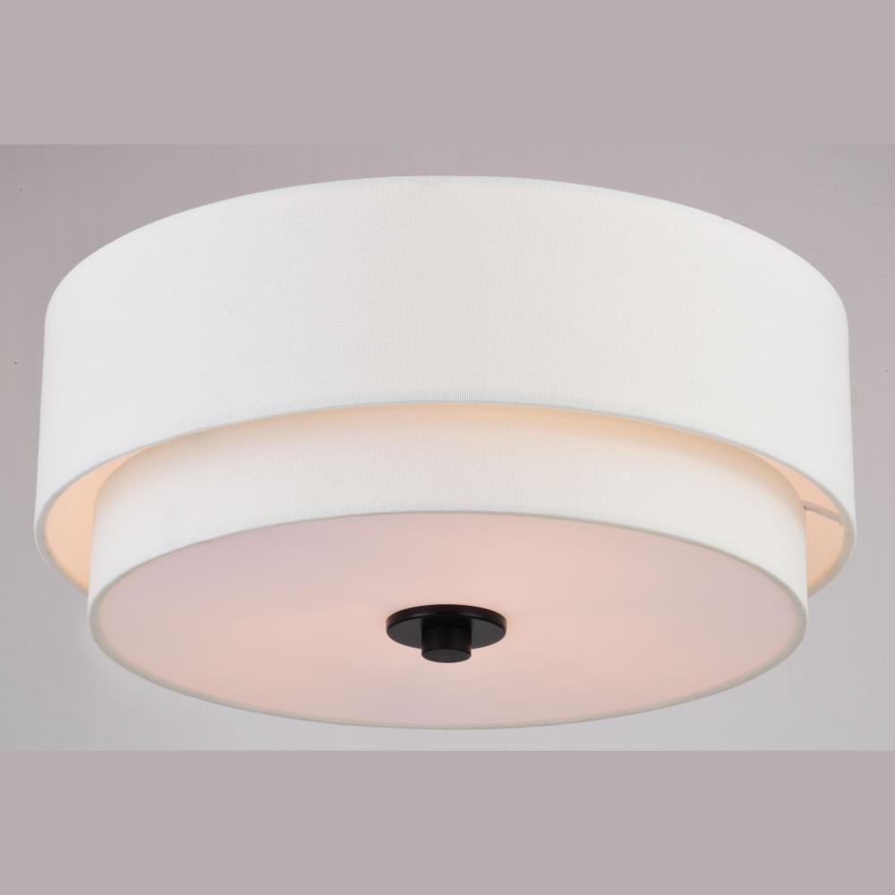 Indulge your Mid-century modern dreams with this timeless collection. The Burnaby collection brings an undeniably updated feel to your vintage styling with its interplay of crisp fabric shade and contrasting metal finish. This flush mount ceiling light is perfect for a low ceiling foyer, living room, hallway, entryway, or bedroom. Its soft Mid-century modern style is enhanced by a white linen drum shade. A white acrylic diffuser hides the bulbs and softens the light distribution.