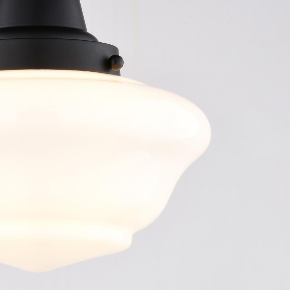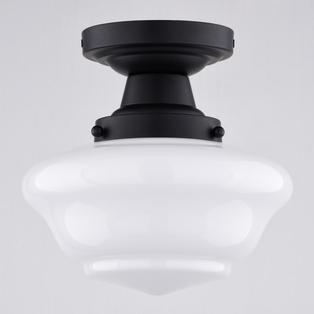 Add a touch of vintage charm to your home with the Eastgate semi-flush light's classic schoolhouse design. Its timeless shape and versatile matte black finish make it a perfect addition to bedrooms, bathrooms, hallways, or entryways. Enjoy the warm and inviting illumination as the Eastgate light enhances your space with its nostalgic glow.