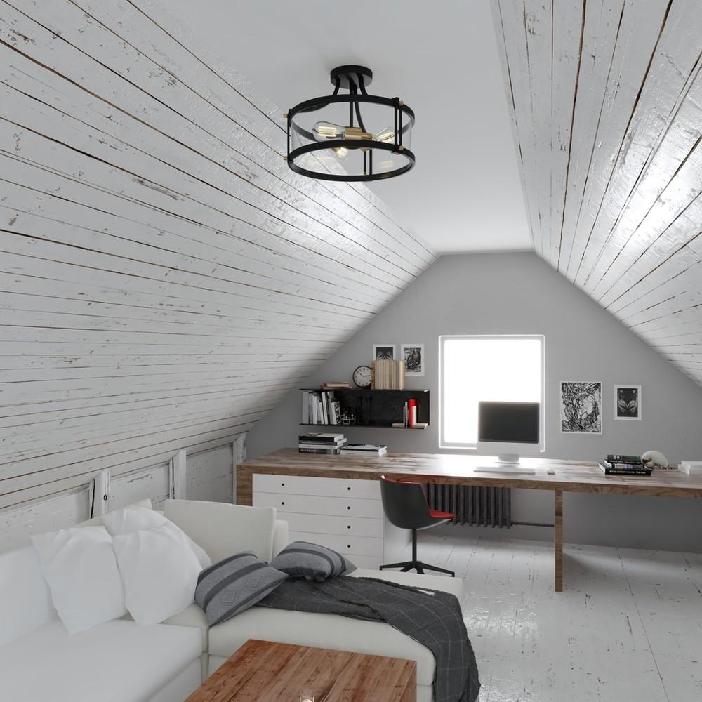 Holbrook 15.75-in. 3 Light Semi-Flush Matte Black and Satin Brass