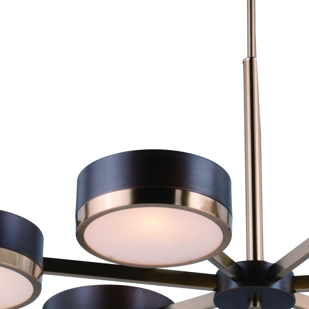The Madison collection is inspired by mid-century modern times in a fun yet striking way. Three ceiling mounted fixtures offer a nice variety to enhance any living or dining room.Finished in architectural bronze and natural brass, this asymmetric trio casts a warm glow of light through frosted glass panes. The asymmetrical linear footprint of this chandelier will complement oval or rectangle dining room tables and is ideal for kitchen islands, dining areas, or bar areas.