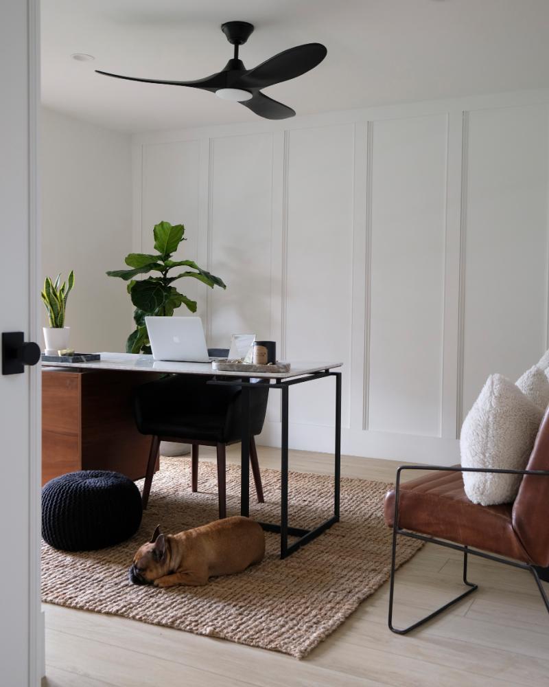 The Maverick 60 LED in Matte Black w Matte Black Blades features an 85.0 X 28.0 6-speed motor with a Thirteen-degree blade pitch. The famous Maverick ceiling fan is now available with an integrated LED light. This advanced LED technology is carefully designed and selected to have the highest quality LED chipsets for superior performance and reliability. With a sleek modern silhouette, a DC motor, and super energy efficiency, the Maverick LED ceiling fan features softly rounded blades and elegantly simple housing. Maverick LED is available in 52, 60, and 70-inch blade sweep and a 3-blade design that delivers a distinct profile and incredible airflow for living rooms, great rooms, or outdoor covered areas. It includes a hand-held remote with six speeds and reverses. All versions feature beautiful hand-carved balsa wood blades. ENERGY STAR qualified. Maverick fans are damp-rated. A