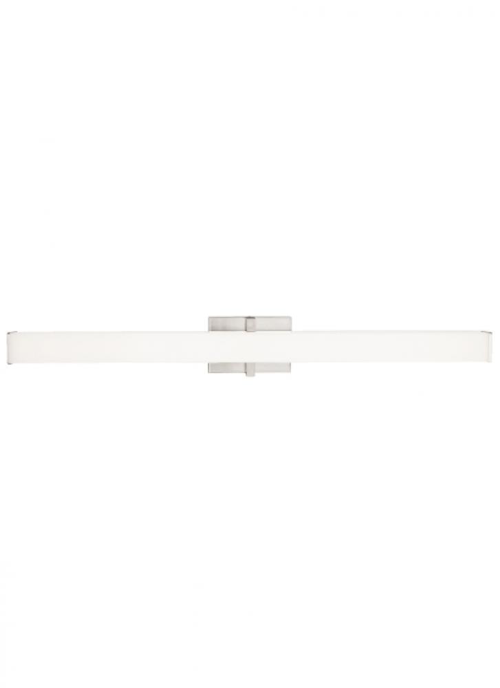 Sleek and stylish best describe the Ellis 36 bath vanity light by Sean Lavin. This contemporary light fixture features a clean design style that’s offset by a number of die cast metal end-caps that add a pop of sophistication. Light pleasantly fills the bathroom and illuminate’s vanities as light spills from three sides making for excellent light distribution. The Ellis is available in modern finishes and can be mounted vertically or horizontally for added design versatility. Also included in the Ellis family is the Ellis Bath 24 and the Ellis Wall, simply search for the Ellis Bath 36 to find its closest relatives. Available lamping options include energy efficient integrated LED, all lamping options are fully-dimmable to create the desired ambiance in your special space.