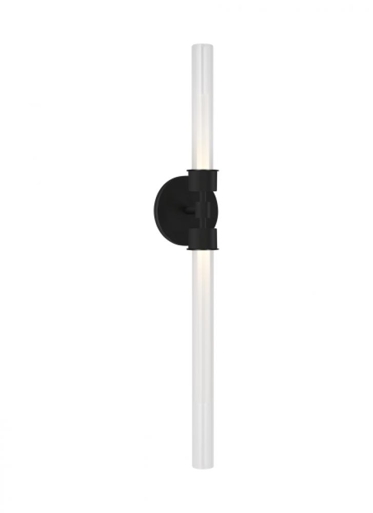The Linger Wall Sconce by Sean Lavin for Visual Comfort Modern provides up and down light with two LED lights shaped by a glass and acrylic cylinders. Available in modern finishes. For design flexibility, the Linger Wall Sconce ships with two long shades and one short shade providing different aesthetic options. Also available as a one-light Wall Sconce, both options beautifully illuminate your bathroom, vanity and hallway. Complete your look with the Linger Chandeliers, Pendant and 1-Light Wall Sconce. Lamping options are compatible with most dimmers. Refer to Dimming Chart for more information. Ships with two long shades and one short shade to create your preferred design.