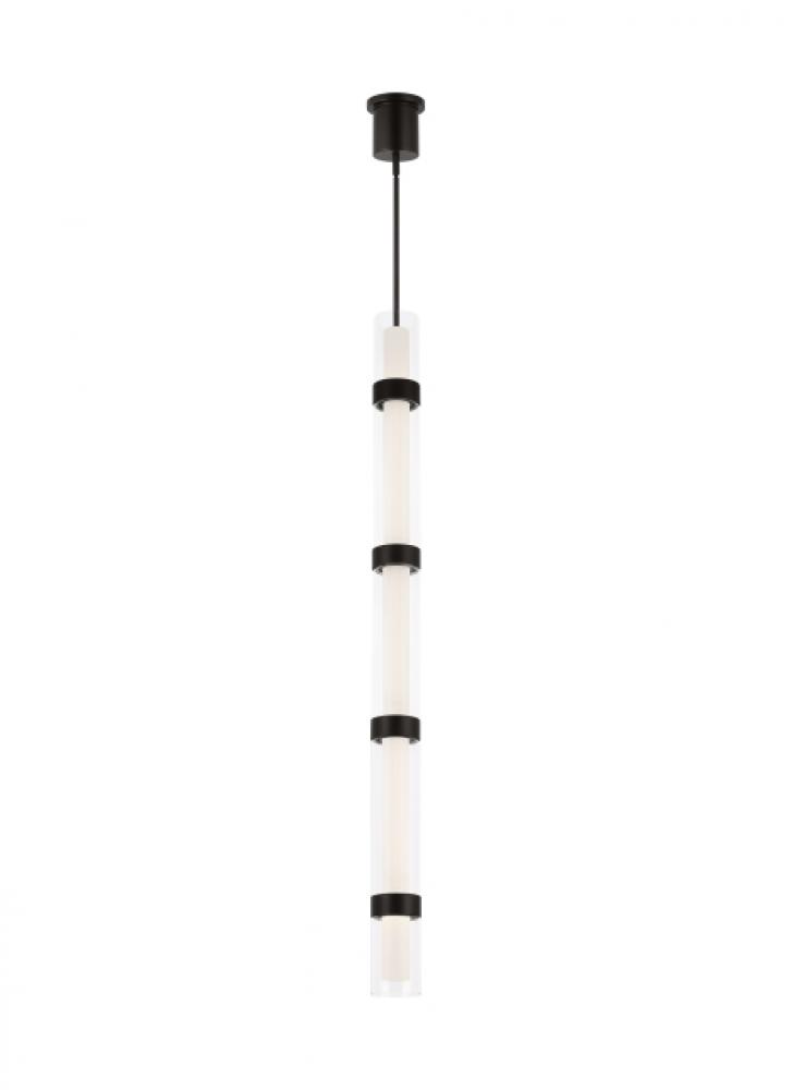 An elongated cylindrical pendant designed with striking LEDs when turned on and presents as modern décor when turned off