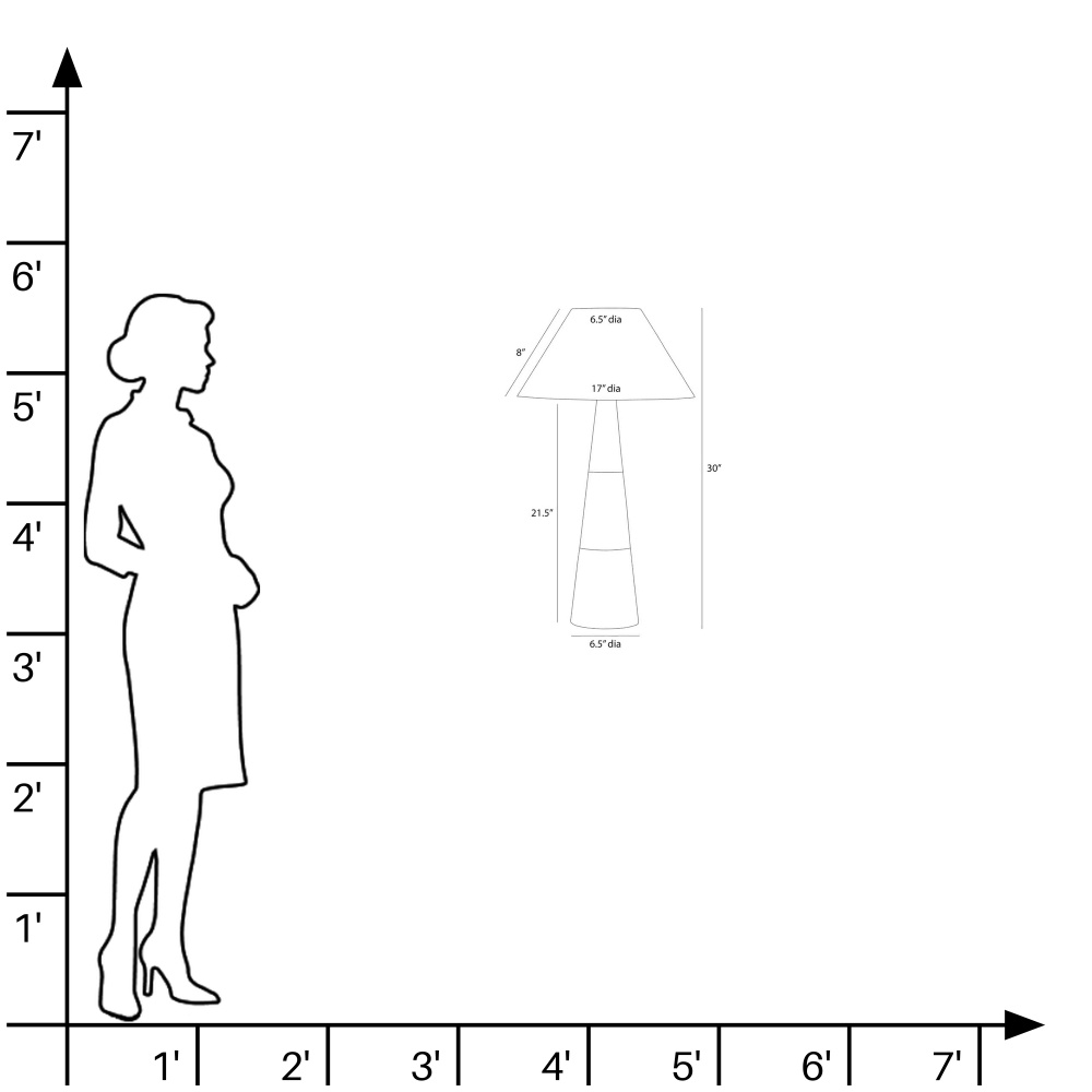 A slender cone of white alabaster meets an antique brass steel shade. This unexpected balancing act of material and color is updated in new materials with the same impactful silhouette. Topped with a tapered metal shade of antique brass steel. Finish will vary.