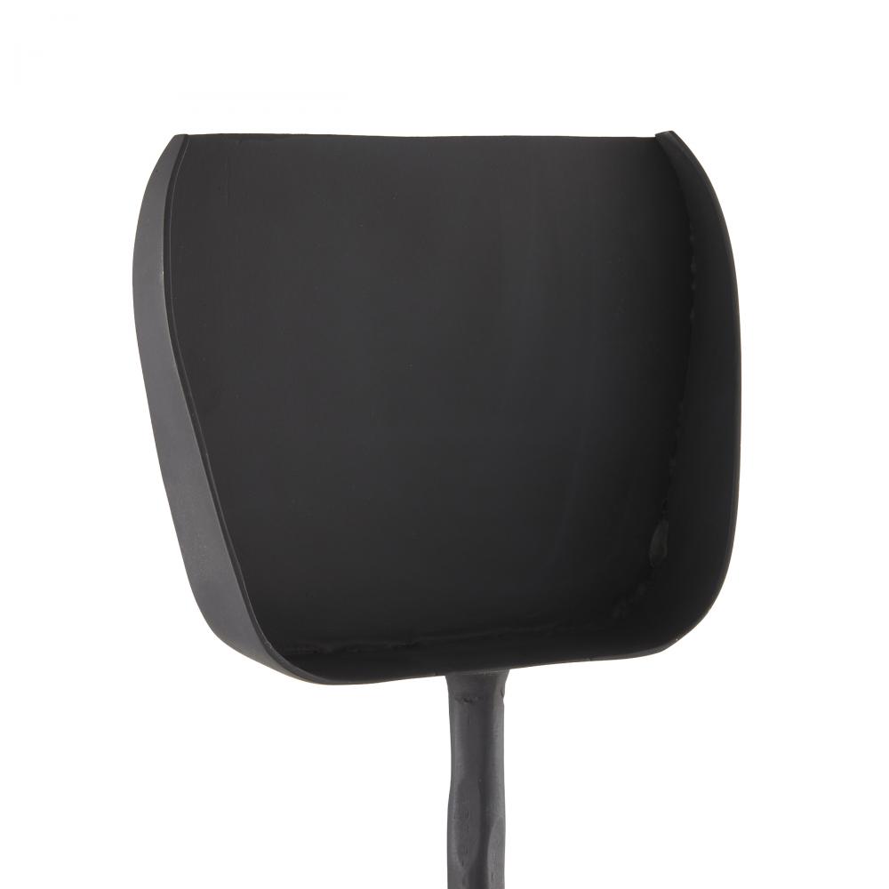 Inspired by medieval ironwork, a blackened, hammered iron toolset offers a playful and literal twist on a timeless hearth essential. The angular handles of the poker, shovel, and tongs entwine together in a form reminiscent of the twisted roots of a tree. A matching iron base complements the set. Designed to pair with the Denison Log Holder. Finish will vary.