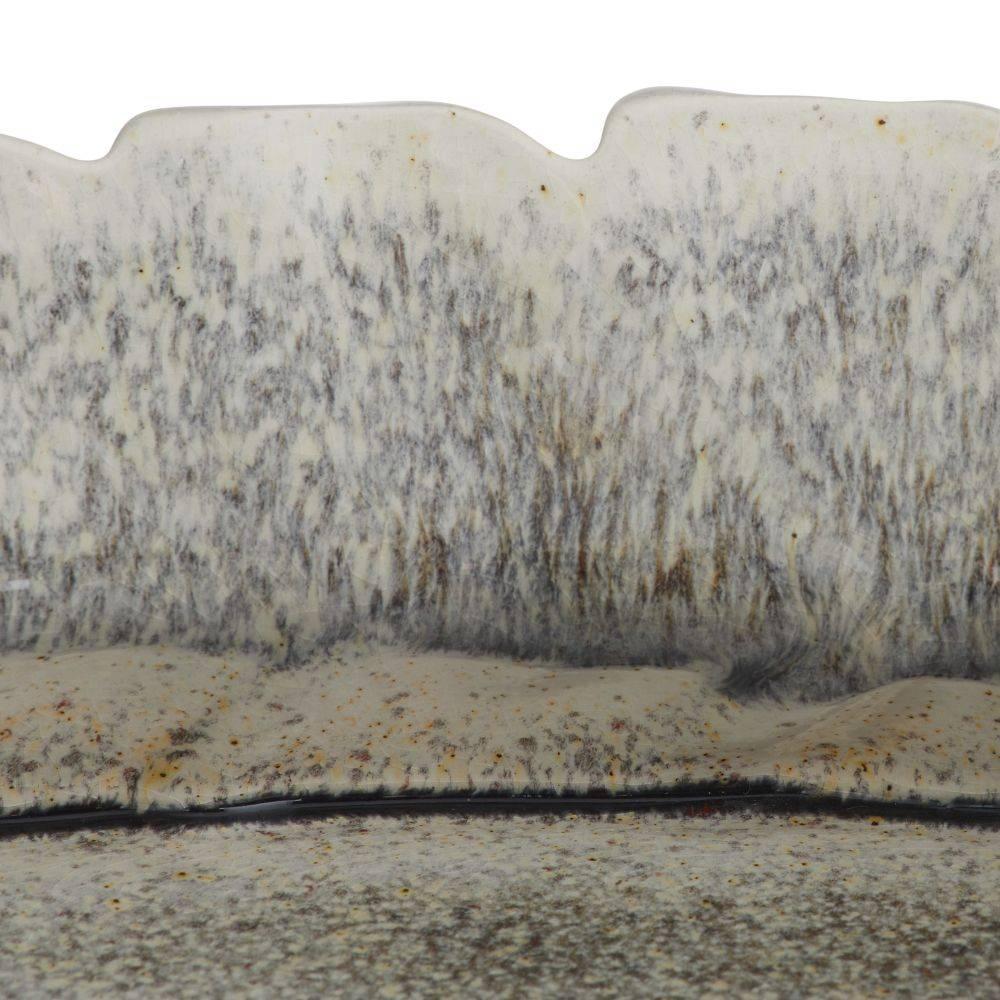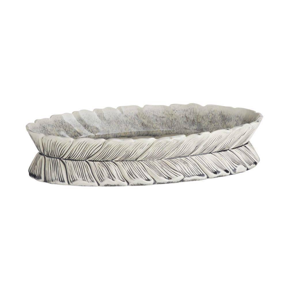 Resembling gathered leaves or feathers; the layered shapes of this porcelain centerpiece draw the eye with the illusion of subtle movement. An ice-reactive glaze highlights every detail with textural definition. Finish will vary.