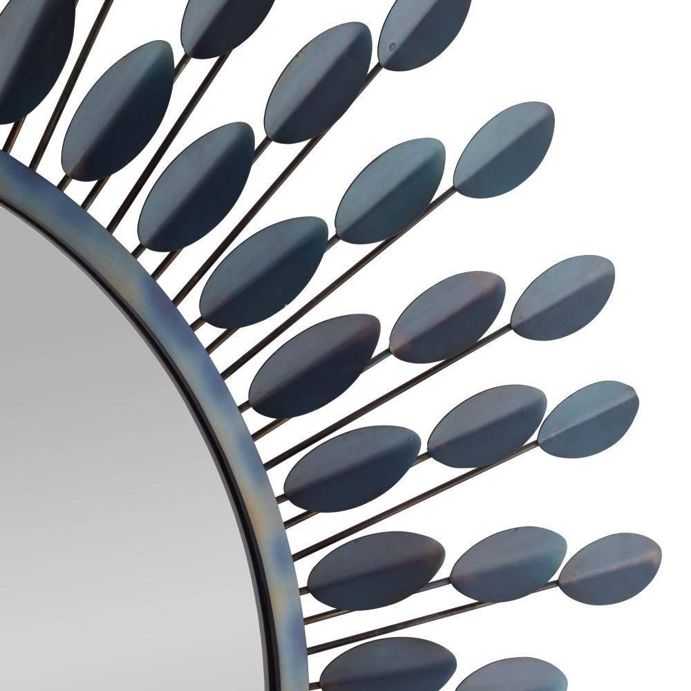 The extroverted form of a dahlia flower inspired our botanically influenced Frida. Crafted of burnt iron, the array of folded petals possesses a blue iridescent finish. Secured at the back with a cleat attachment. Finish will vary.