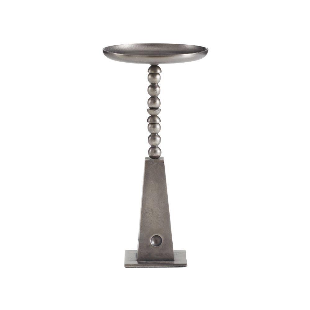 The playful form and totemic base of the Grady are influenced by the postmodern Italian design movement known as Memphis. Cast in the unexpected material of vintage nickel aluminum, the style's small scale and curved lip make it ideally suited for a drinks table. Finish will vary.