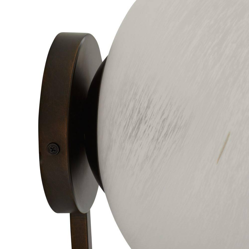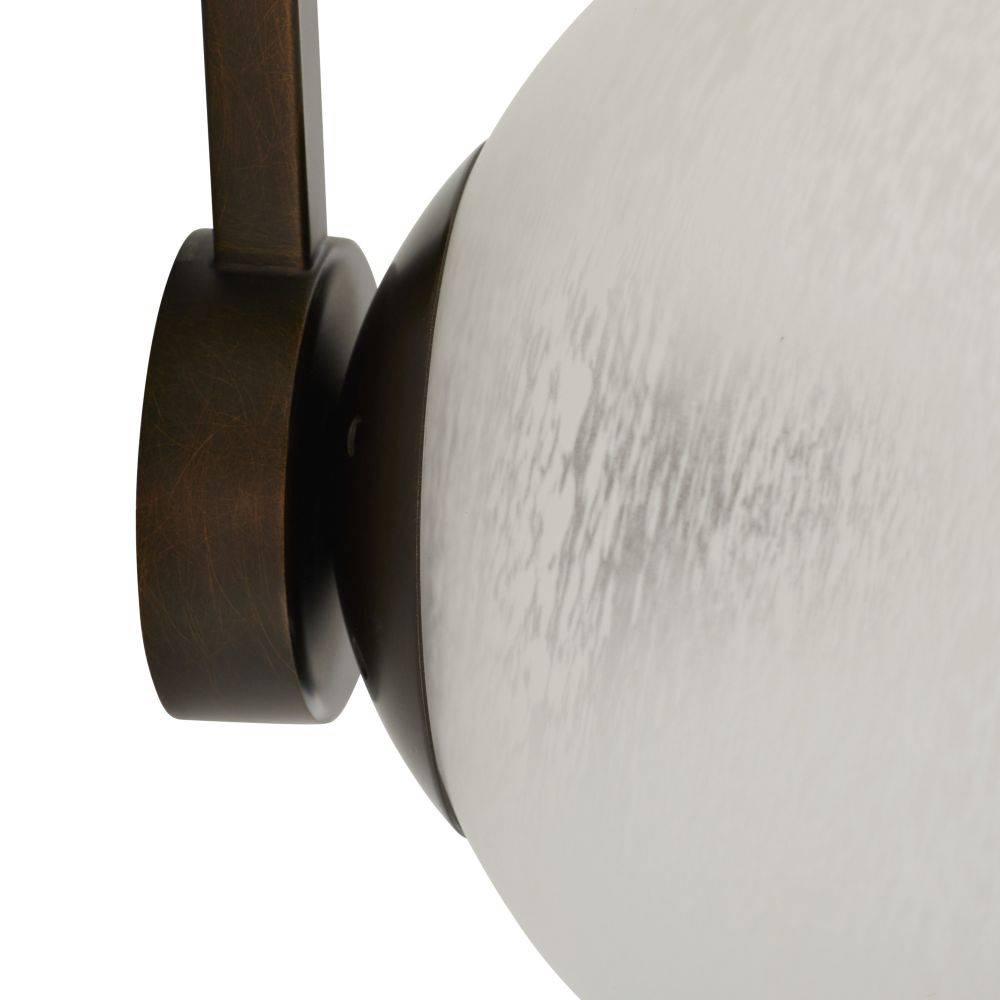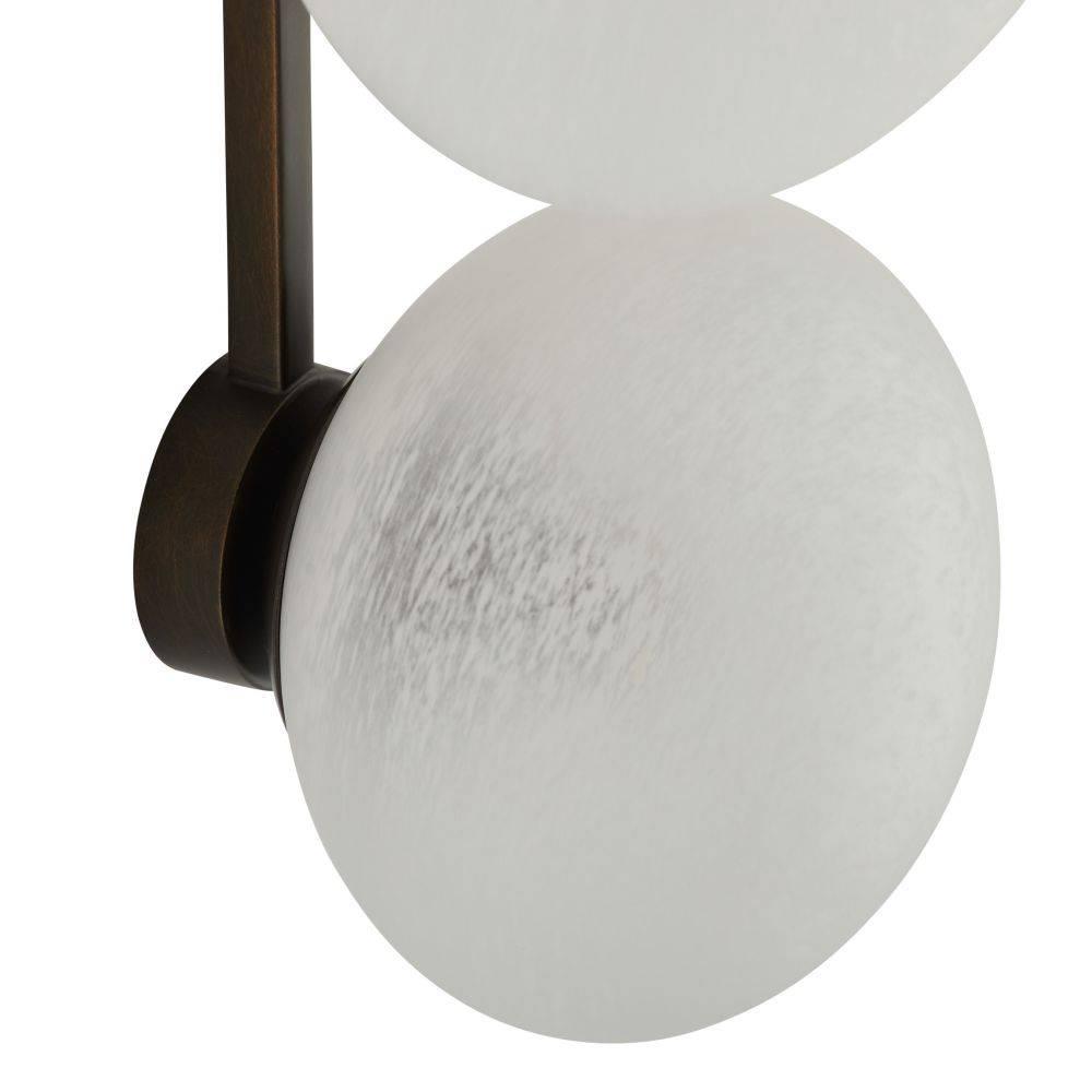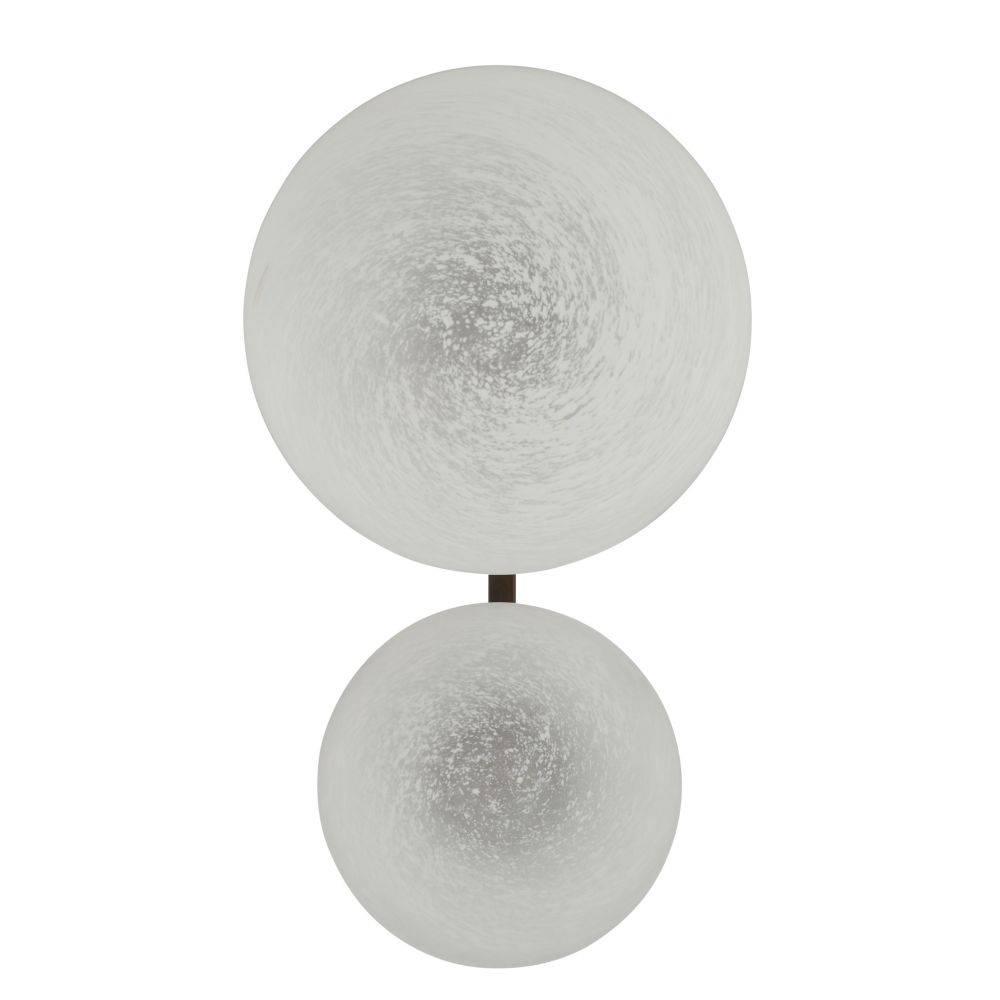 An English bronze-plated steel backplate suspends dual shades of matte swirl glass, mimicking stars strung throughout a constellation. This simple yet impactful style dazzles from every angle. Damp-rated, although limited covered outdoor areas may affect finish. Finish will vary.