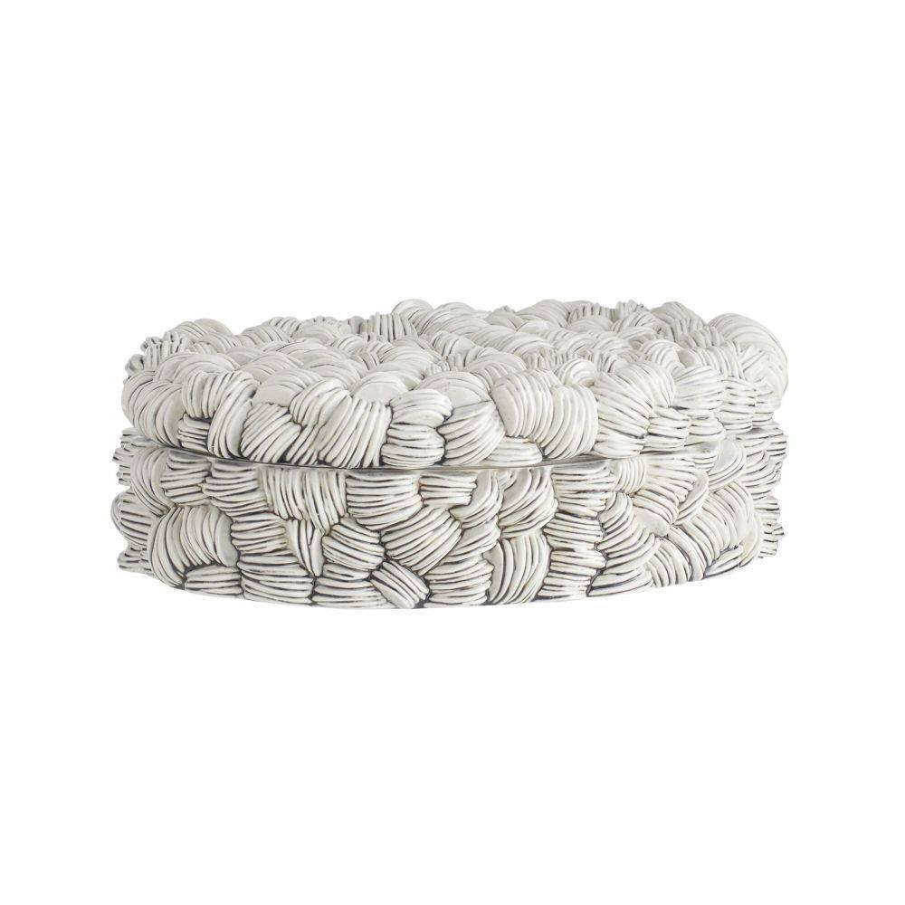 Like sugar icing piped on an elaborate cake, the finish of our sculptural Hampton delivers an eccentric take on the layering trend. Sculptural in shape, this porcelain style is finely crafted with hand-applied ice-reactive glaze that accents every twist and groove. Finish will vary.