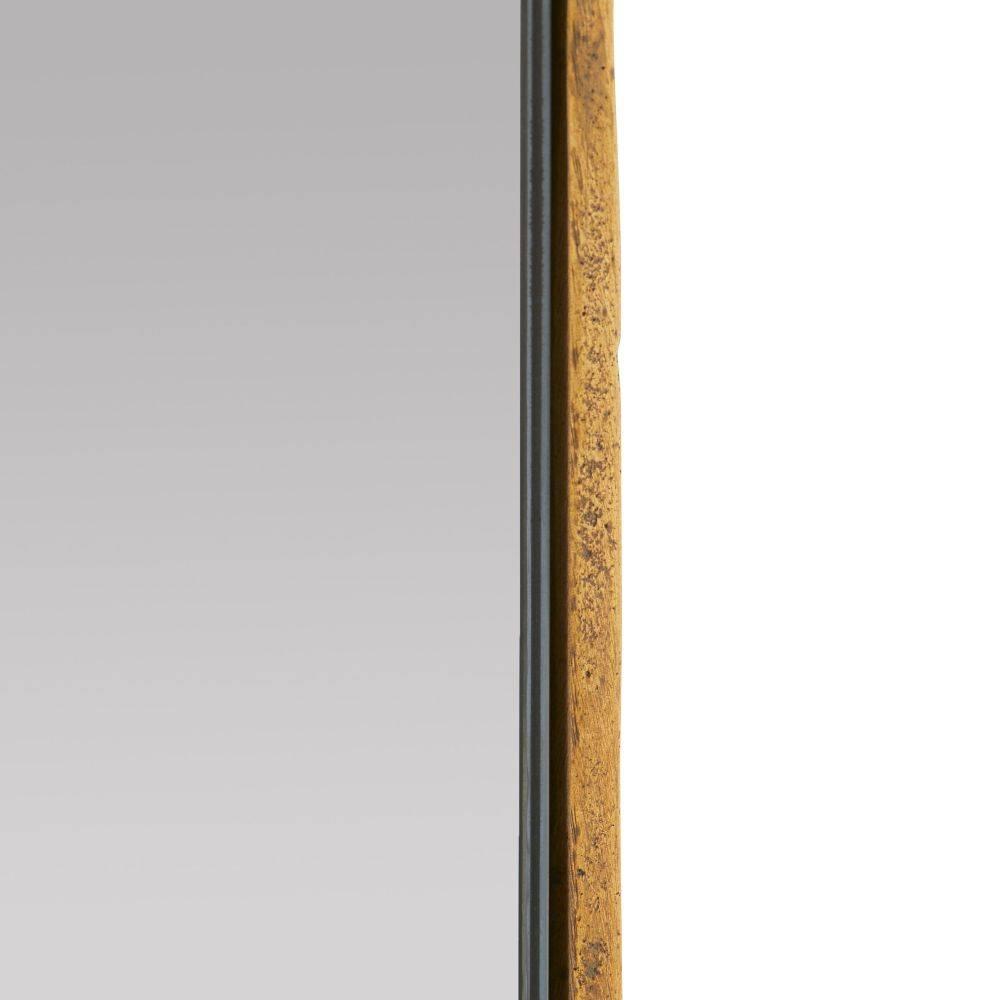 Playing with the concept of filled and unfilled forms, the Inset long mirror's smooth glossy surface is set within a deeply textured, bronze plated aluminum form as if it were being poured into a void. The offset, antique brass palted aluminum pill shaped elements create a sense of sliding motion, making the mirror a uniquely modern, dynamic choice for interiors of all kinds. The Inset long mirror can be hung vertically or horizontally to create unique compositions. Finished with a cleat at the back for security. Finish will vary.