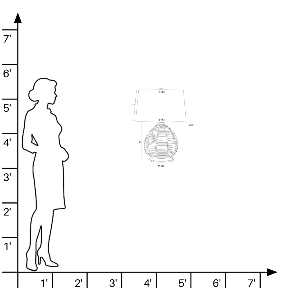 A classic gourd shape of flint luster glass is updated with a ridged texture and glimmering luster finish designed to reflect the light. Accented with antique brass hardware. Matching decorative antique brass finial and ivory microfiber drum shade lined in off-white cotton. Finish will vary.