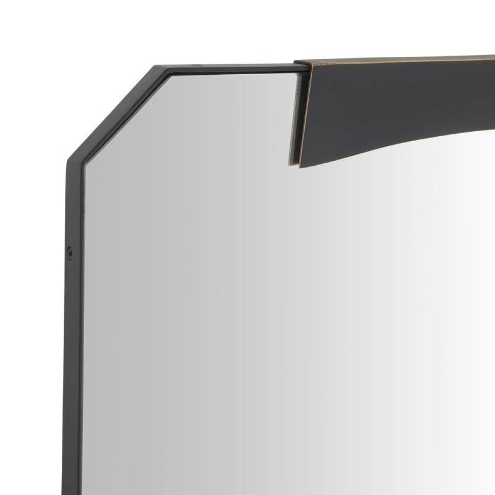 Elegantly modern, the Kris Rectangular Mirror displays a refined geometric design. Gracefully formed brass clasps hold this mirror top and bottom, all in a bronze finish over a blackened iron frame. The raised design creates depth and adds chic sophistication. Security cleat hanging hardware included and allows for vertical or horizontal display.