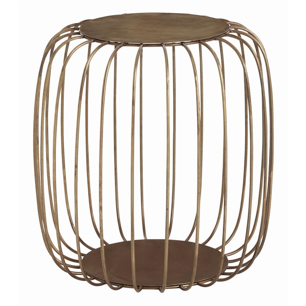 It is a stool or a table this iron cage design finished in antique brass can be either.