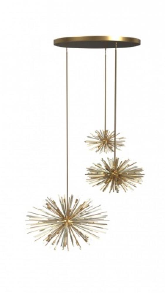 Inspired by the iconic Sputnik design, the Palisades Ave. Collection showcases a dynamic arrangement of varying-sized spokes radiating from a central spear base. This striking fixture is beautifully accented with a mix of glass, metal rods, and glowing bulbs, creating a captivating play of light and form that adds bold sophistication to any space.