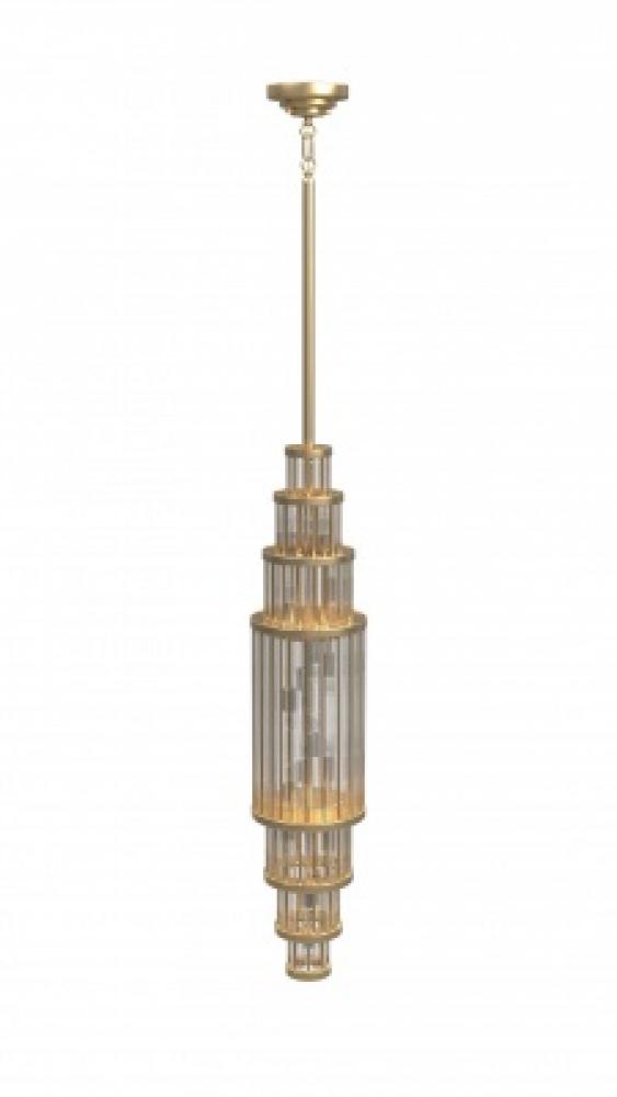 Waldorf 38" Pendant in Aged Brass with Glass Rod Accents