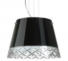 Amelia features a tapered drum shape that fits beautifully in transitional or eclectic themed spaces. Includes flat frosted glass bottom diffuser. Black Damask is an art deco creation in handcrafted glass. The inside of the glass is etched so the pattern appears frosted then the background is painted in black on the inside, with white inside that. This allows the outside surface to stay glossy. This pendant luminaire makes a statement with a handcrafted glass shade and stainless steel cable support. Bronze metal finish.