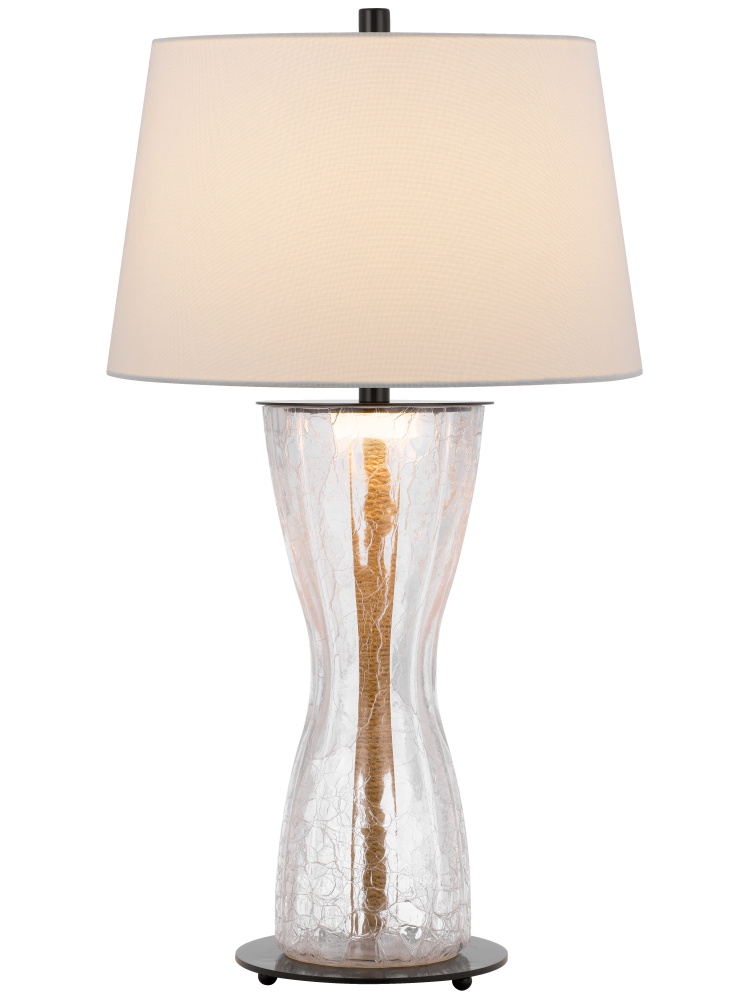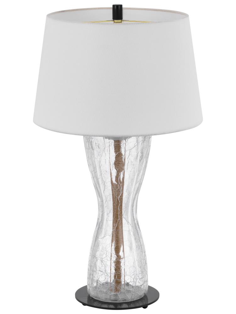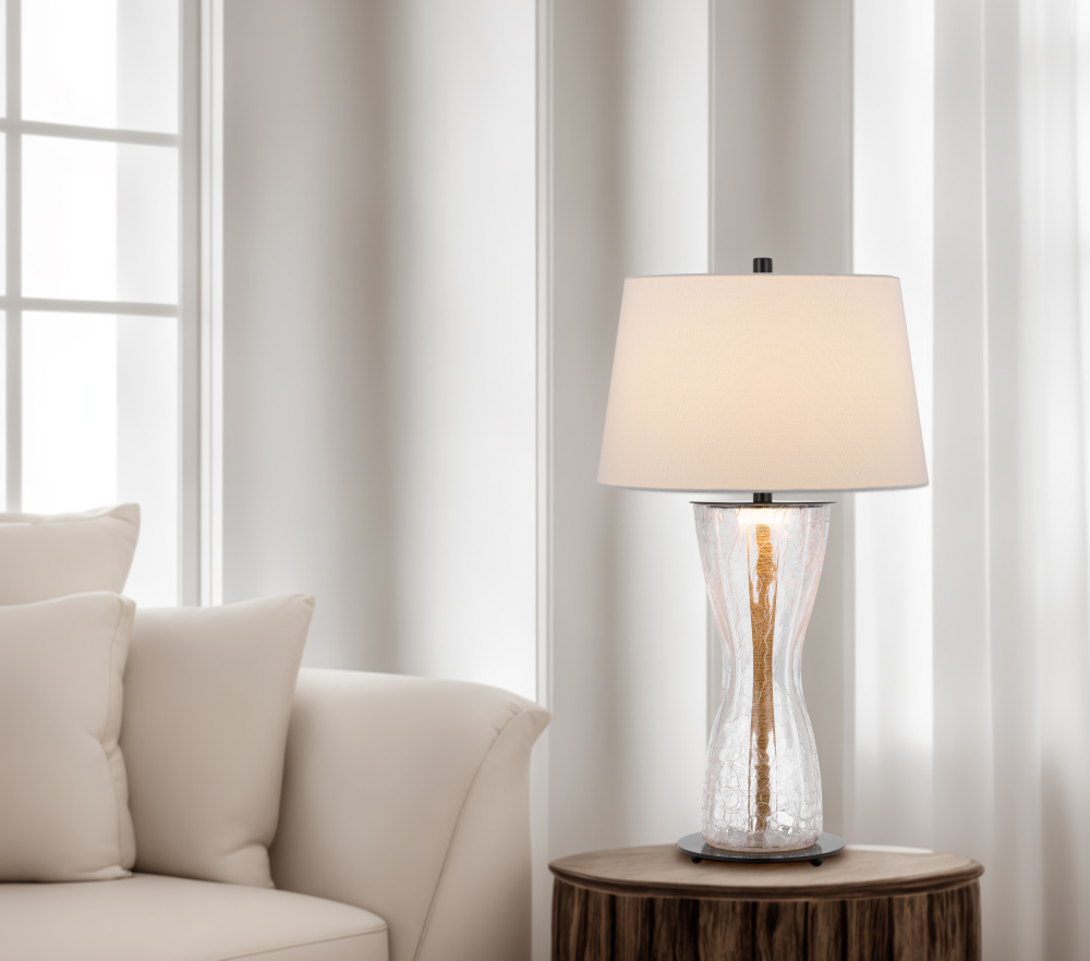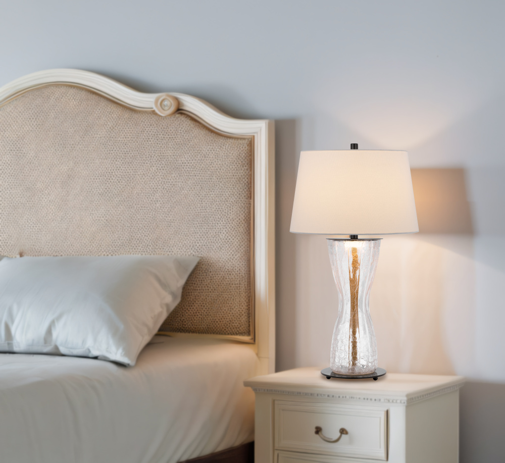 100W Andria crackle glass table lamp with 2W LED night light and hardback fabric shade